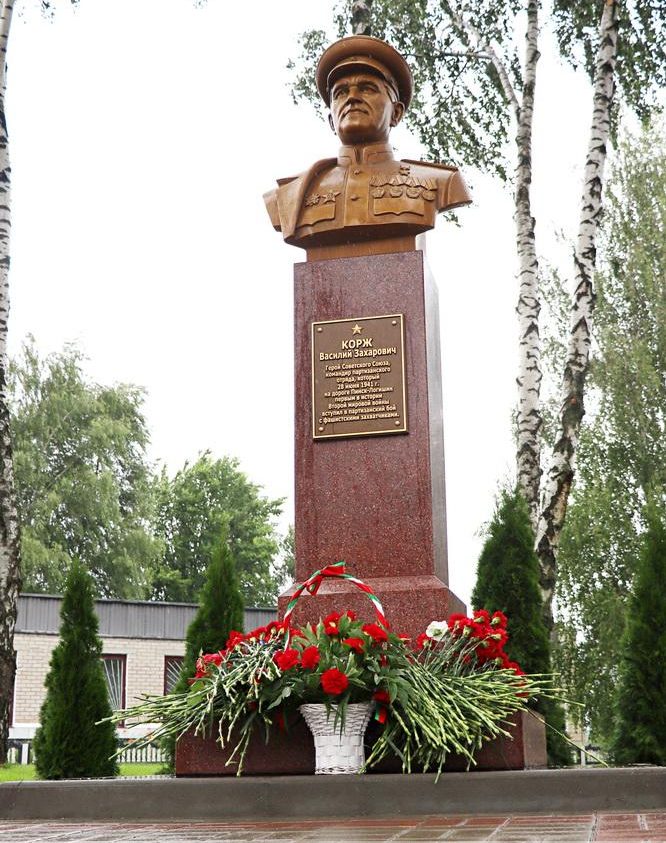 28 июня 2023 года – д. Ставок, Пинский район. Неподалёку от места, где 28 июня 1941 года на автодороге Пинск–Логишин состоялся первый партизанский бой, в торжественной обстановке открыт бюст В. З. Коржу.