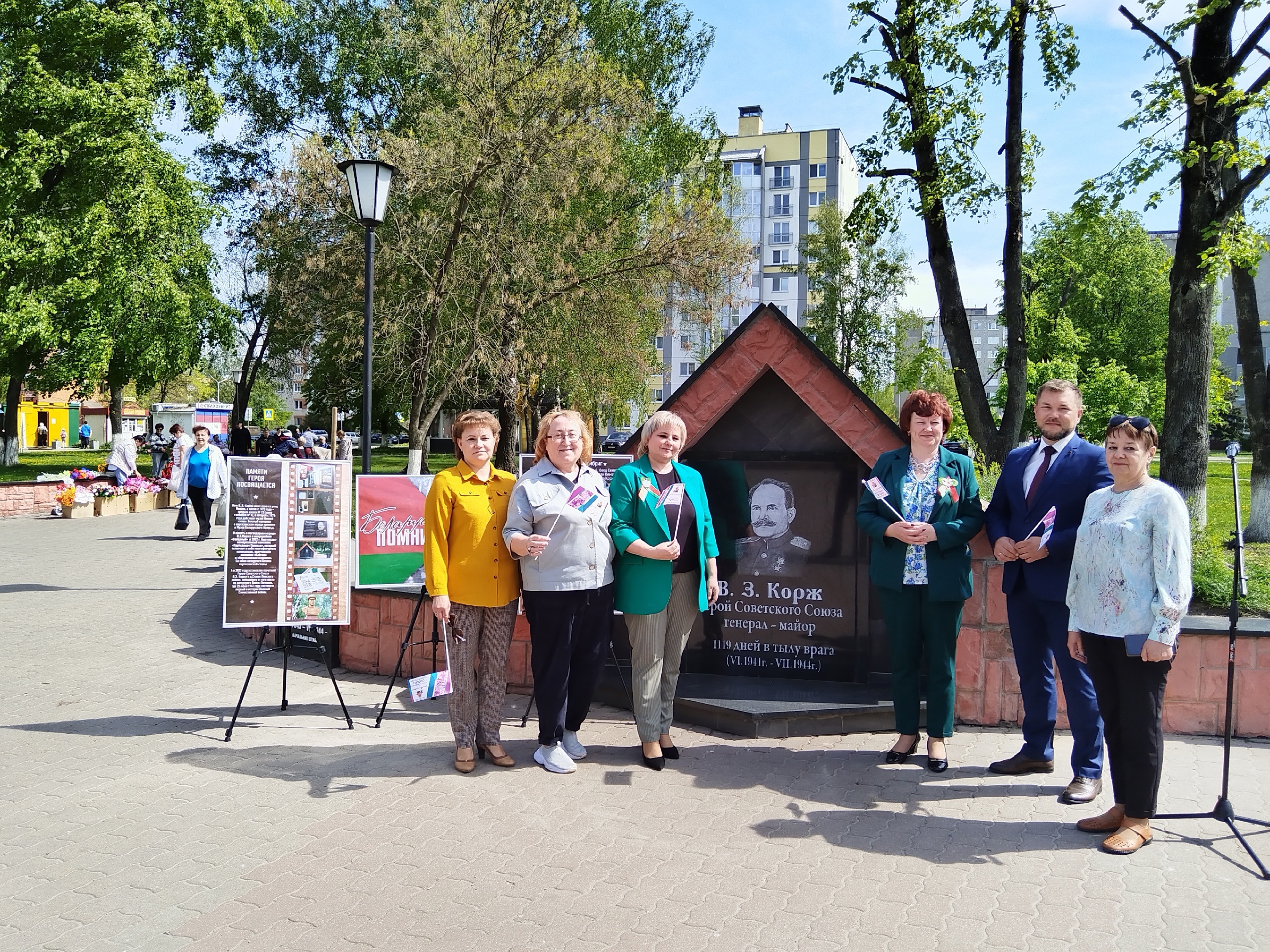 В 2024 г. сотрудниками ГУК «Пинская ГЦБС» и ГУК «Солигорская РЦБ» был разработан совместный патриотический проект «Через веточку сирени рассказали о войне», посвящённый 125-летию со дня рождения Василия Захаровича Коржа. Известно, что именно по инициативе легендарного партизанского командира на его родине в Солигорском районе было положено начало созданию сада сирени. В честь этого события и был назван библиотечный проект. Кульминацией совместного проекта стала социал-акция «И опять зацветёт сирень сорок пятого года», организованного сотрудниками обеих систем на Поляне партизанской Славы в г. Пинске. В мероприятии приняли участие учащиеся ГУО «Гимназия №3 им. В. З. Коржа г. Пинска», колледжей и общеобразовательных школ города Пинска. Перед присутствующими выступили: представители Пинского городской администрации, директор и сотрудники ГУК «Солигорская районная центральная библиотека», представители общественности города, учащиеся. В ходе акции у памятной плиты В. З. Коржу были высажены саженцы сирени, привезенные гостями из Солигорска. Далее действие перенеслось в библиотеку-филиал №7 ГУК «Пинская ГЦБС», где для молодежи города была организована патриотическая диалоговая площадка.